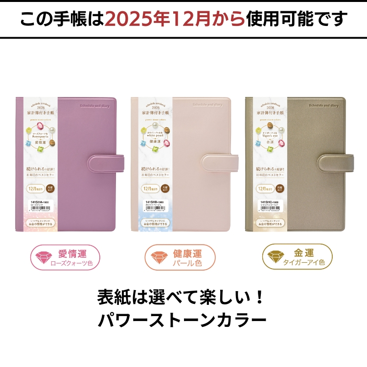 クツワ 手帳 2026年 家計簿 付き 手帳 A6 週間 KUTSUWA 開運 パワーストーン ダイアリー メール便送料無料2025年12月始まり ◇ 通販 文房具の和気文具。