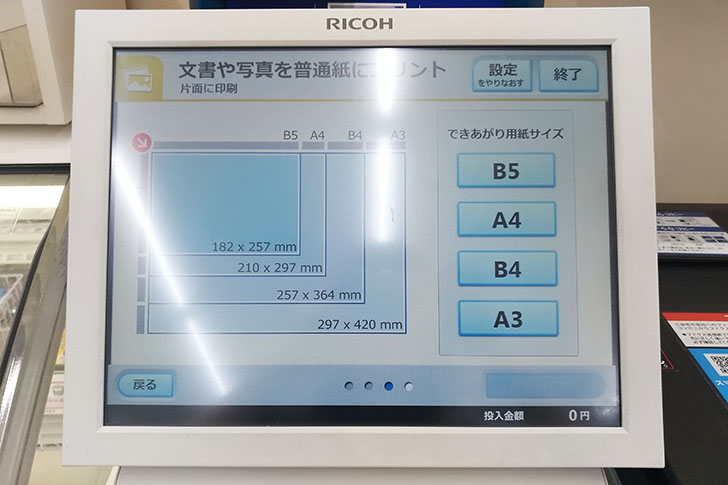 ミニストップでモノクロコピーマルチコピー機の使い方 印刷方法。