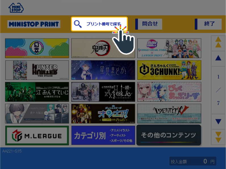 購入ガイド -ミニストップ プリント番号を指定して購入する方法。