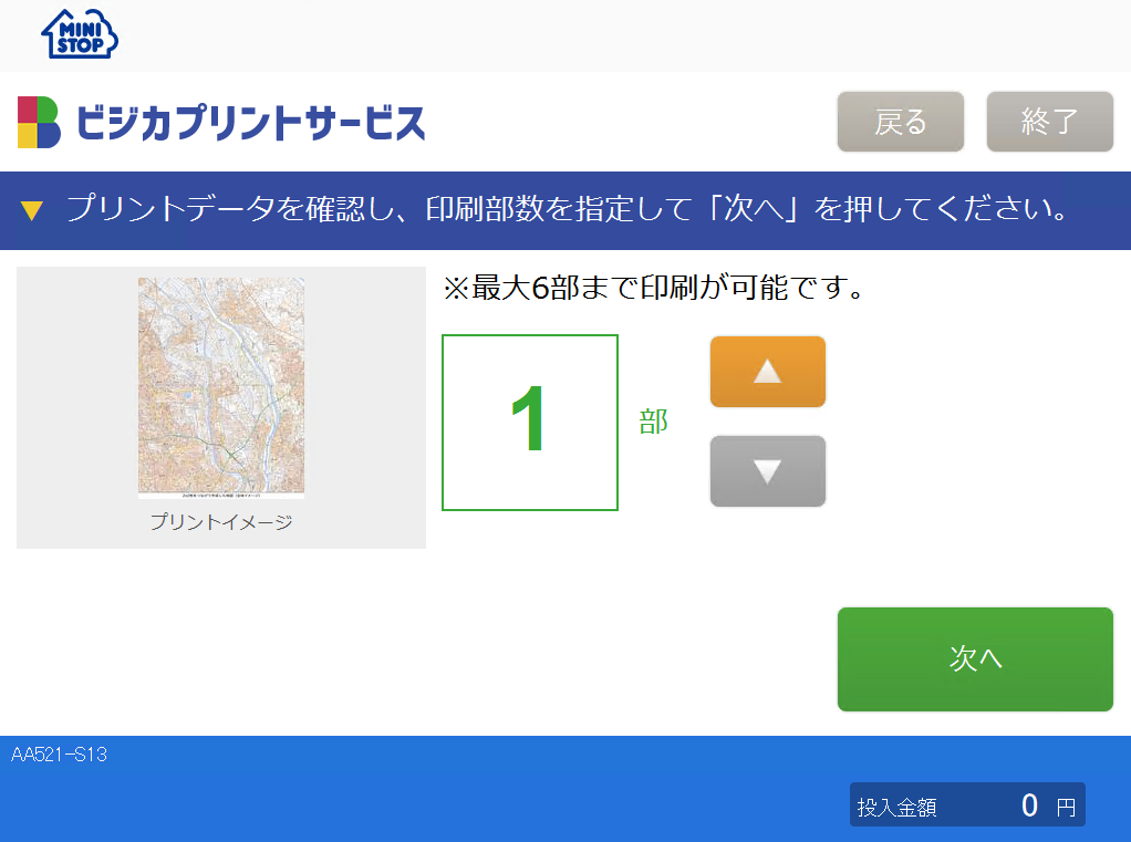 マルチコピー機操作 プリント番号で印刷コンビニ地図プリント。