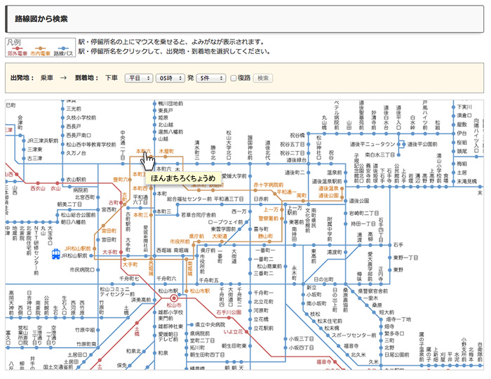 路線図・時刻表松山方面 路線図③番松山市駅線伊予鉄。