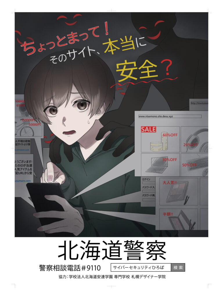 2年連続! 北海道警察 『ネットショッピング詐欺防止ポスター』に在校生の作品が採用!専門学校札幌デザイナー学院のニュースサイト。