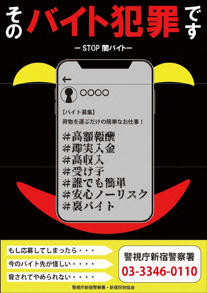 新宿警察署「特殊詐欺・闇バイト・ぼったくり啓蒙ポスター」をデザイン。