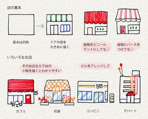 3-9. 建物や街並みにも挑戦 - 4色ボールペンで!かわいいイラスト描けるかな。