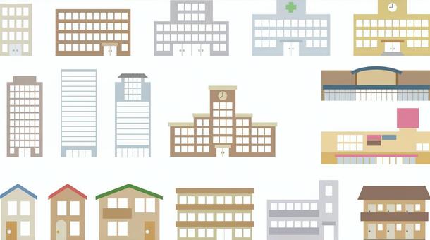 日本語授業の教材作成で使える24種類の建物のイラスト 無料ダウンロード。