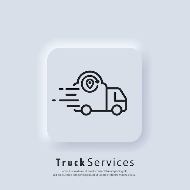 青と白の背景に配達トラックの追跡位置ピンのベクターイラスト。」のベクター画像素材 ロイヤリティフリー2208270301Shutterstock。