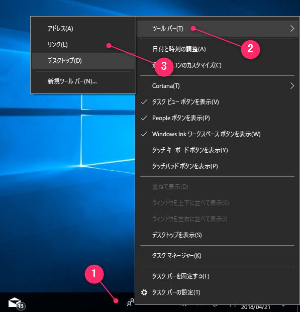 Windows 10 タスクバーからデスクトップや各種フォルダーへアクセスしたい日経クロステック xTECH。
