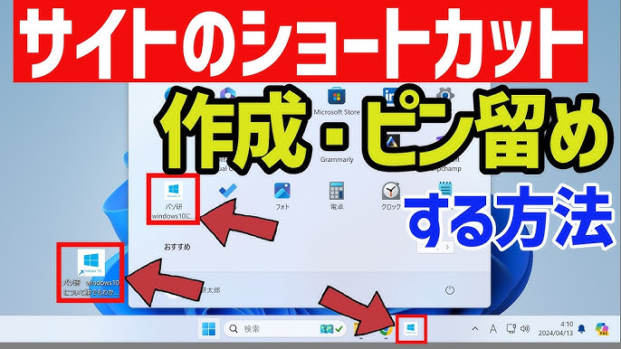 Windows 1110 タスクバースタートメニューにURLショートカットを追加する - PCまなぶ。