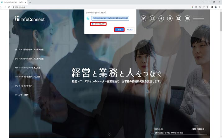 Webサイトをタスクバーにピン留め ショートカット作成 する方法インフォコネクト株式会社。