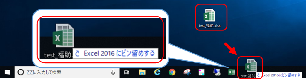 Win10 タスクバーExcelショートカットをショートカットキーで起動する方法。