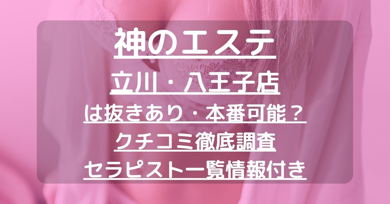 閉店神のエステ 立川・八王子店 で抜きあり調査みありは本番可能なのか? 抜きありセラピスト一覧– メンエス怪獣のメンズエステ中毒ブログ。