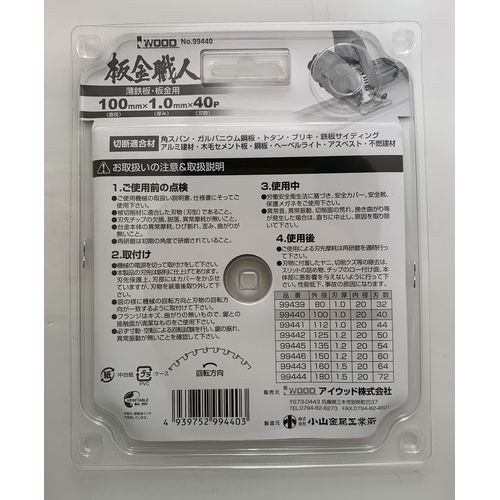 3枚セットIwood アイウッド99440 鉄人の刃 板金職人チップソー 100mm×1.0×40P ◇アイウッド 板金職人100×1.0×40P先端工具・ビット・ブレード 切削・研磨・切断・穴あけ ,チップソー・ダイヤモンドブレードプロ工具専門店のジャパンツール。
