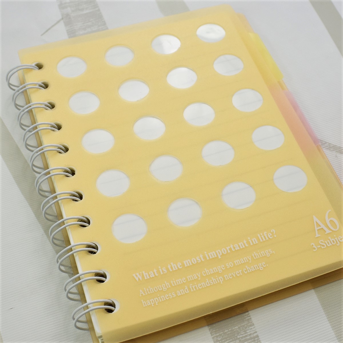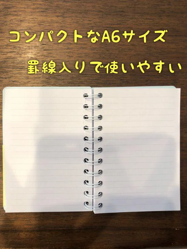 表 背表紙共に樹脂板のA6サイズ リングノート、ミシン目入りでカットもきれい @100均 セリア。