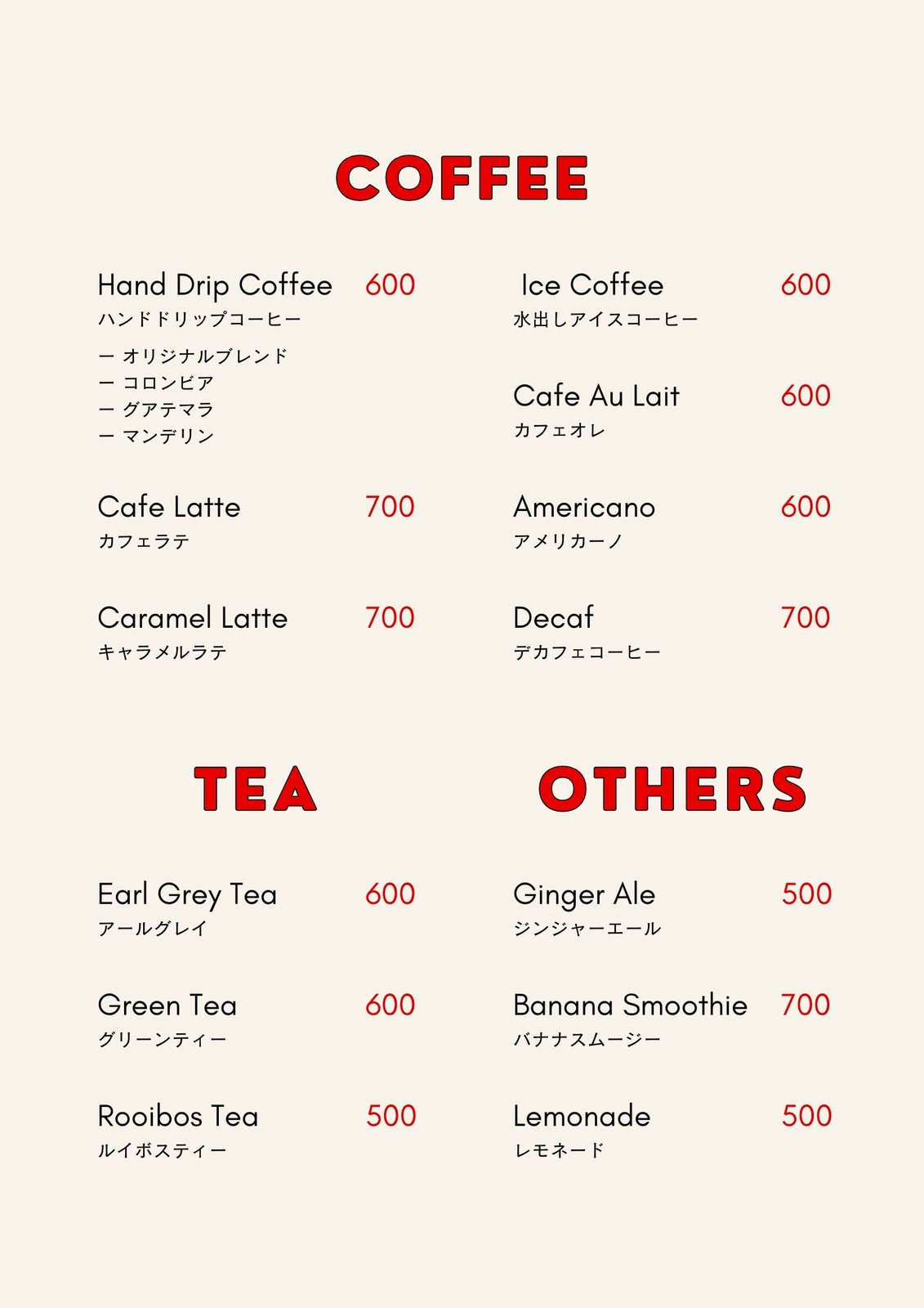 カフェメニュー白シンプル - Canvaのテンプレート。