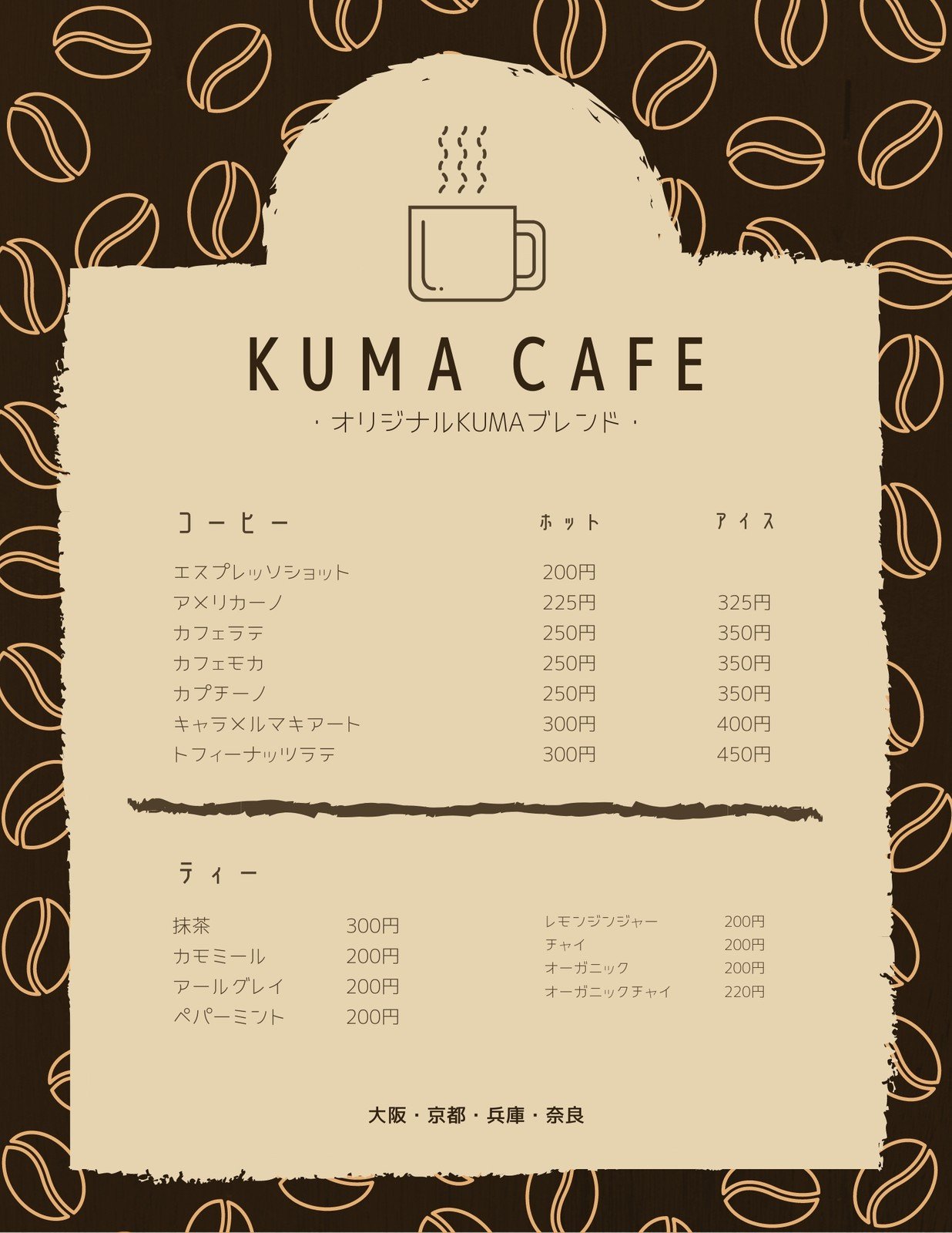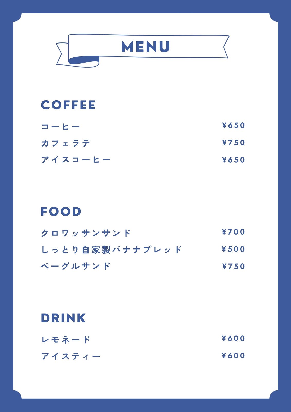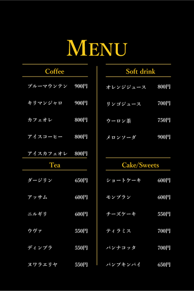 カフェメニュー表_01 編集可Canva納品Canva テンプレートショップ。