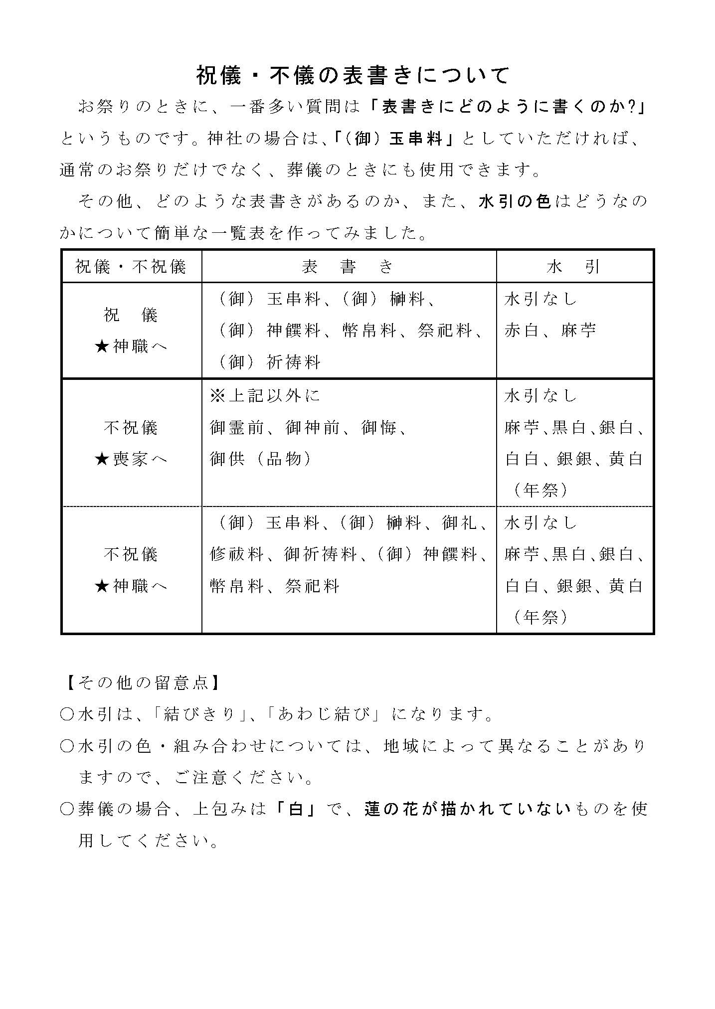 初穂料 玉串料 神饌料用途別説明・書き方ご祝儀袋のお作法。