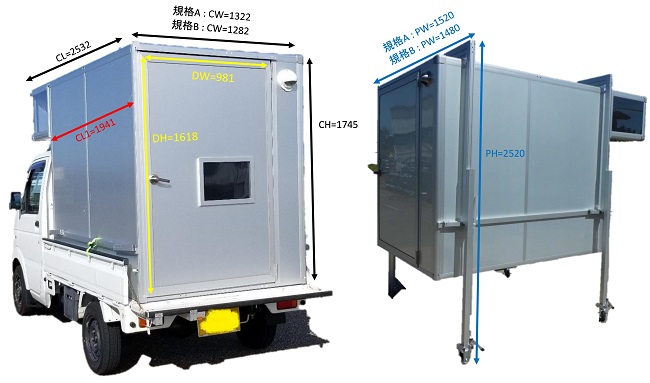 移動販売!軽トラック用!3面跳ね上げ式!軽トラック箱!検索:キッチンカー、たこ焼き、焼き芋他。