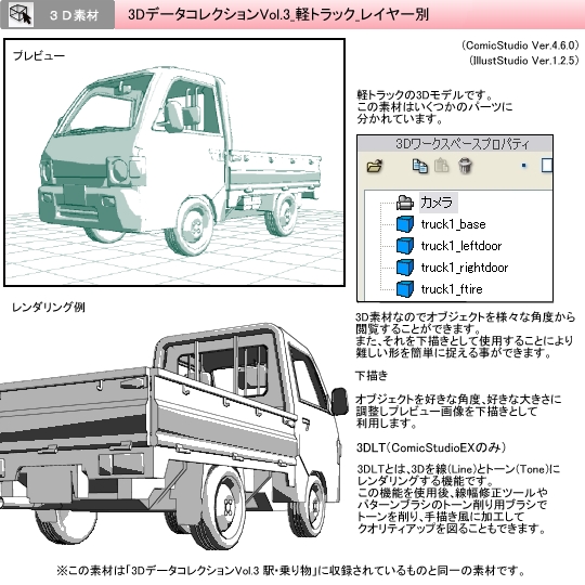 軽トラック_レイヤー別 - CLIP STUDIO ASSETS。