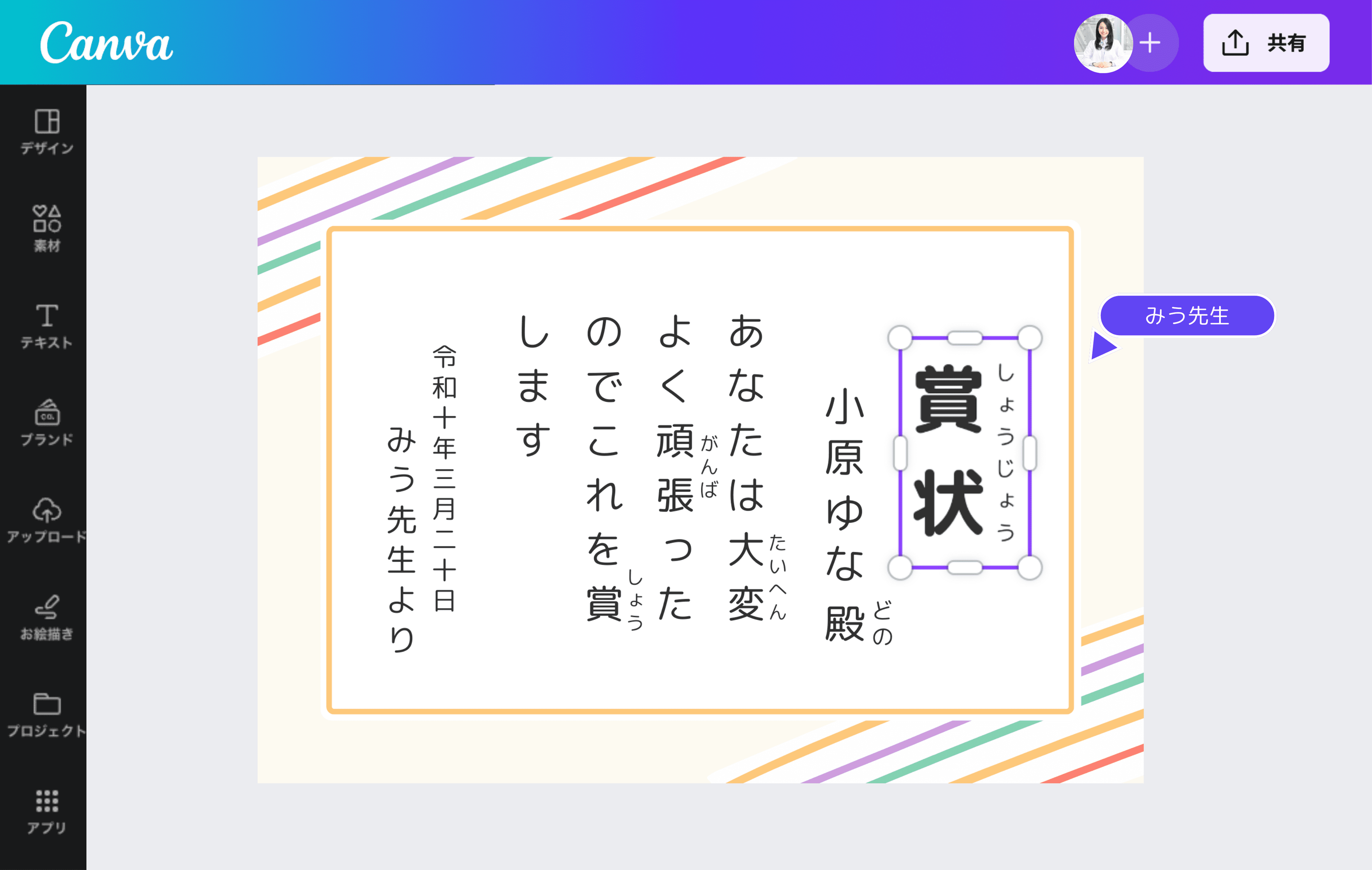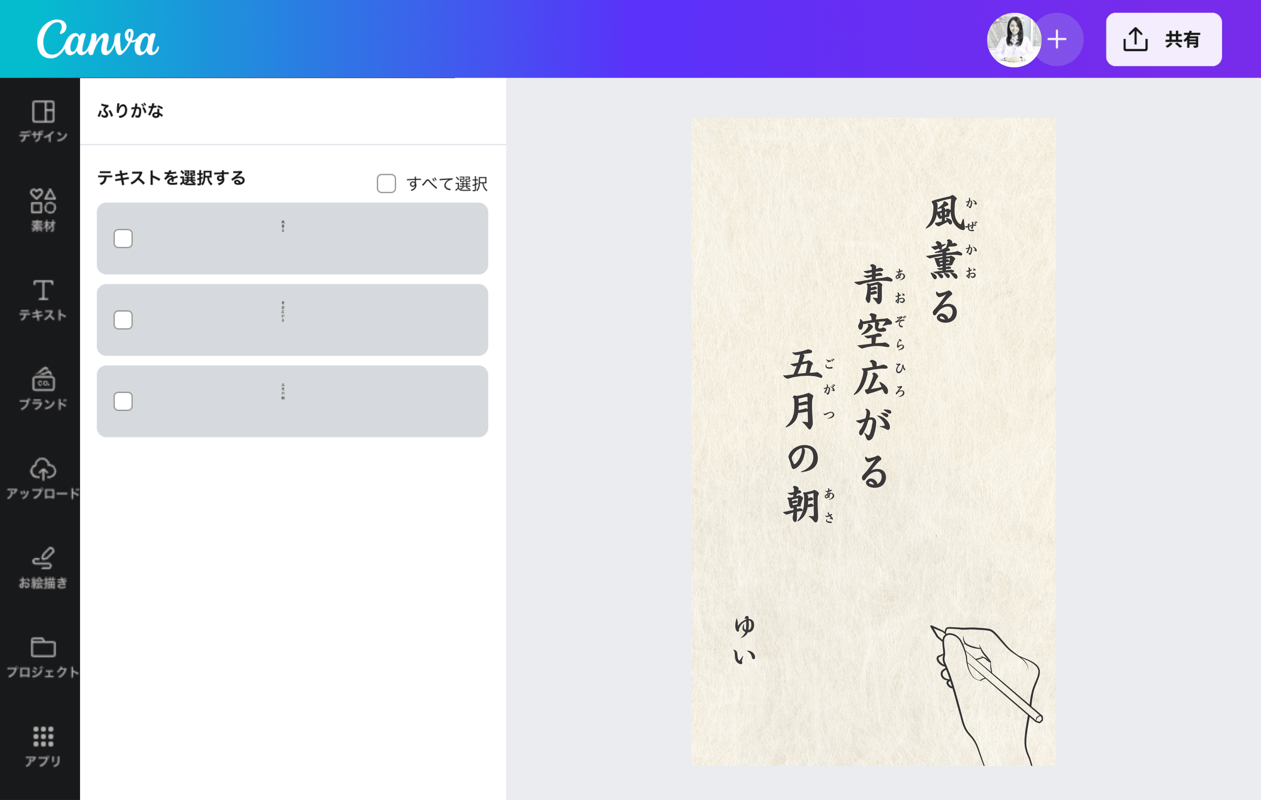 ふりがな機能 漢字に自動でひらがなのルビを振る機能Canva。