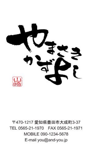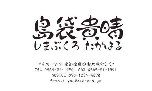 筆文字書体 名刺ひらがなの名前で目立つ、書道家風筆文字名刺: 可愛い名刺・おしゃれな名刺・かっこいい名刺 ・サンキューカード・ショップカードご購入者様・観覧者様からのデザインコメントをご紹介!!名刺デザイン 作成 印刷 の通販ショップ名刺広芸アンドユ。