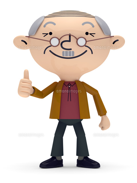 右手でサムアップするシニア男性 10658000050 の写真・イラスト素材アマナイメージズ。