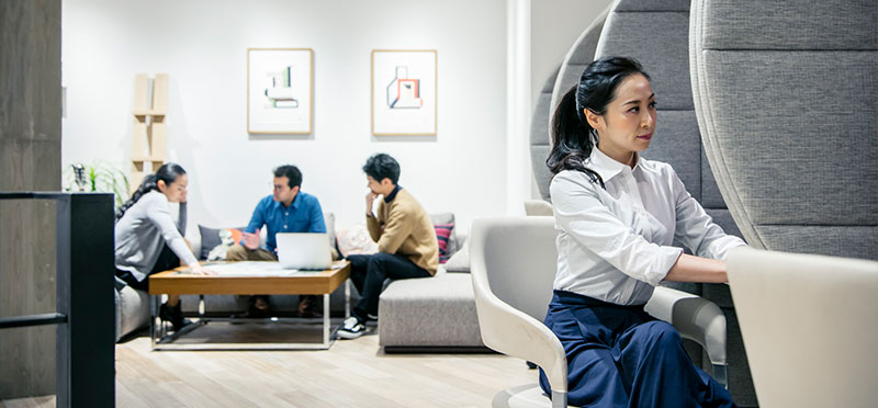 オフィス環境が働く人の「パフォーマンス」に影響する!ウェルビーイングの観点から見る労働環境の作り方コニカミノルタのオフィス デザイン・移転ソリューションコニカミノルタ。