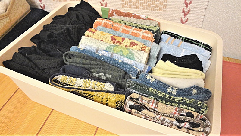 ダイソーの「スクエア収納BOX」に靴下とハンカチタオルを裏技で大量収納!けちは生活の知恵。