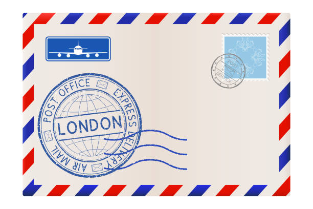 国際郵便封筒ロンドン スタンプ青い消印と切手 - イギリスのベクターアート素材や画像を多数ご用意 - イギリス, 郵便切手, Send - iStock。