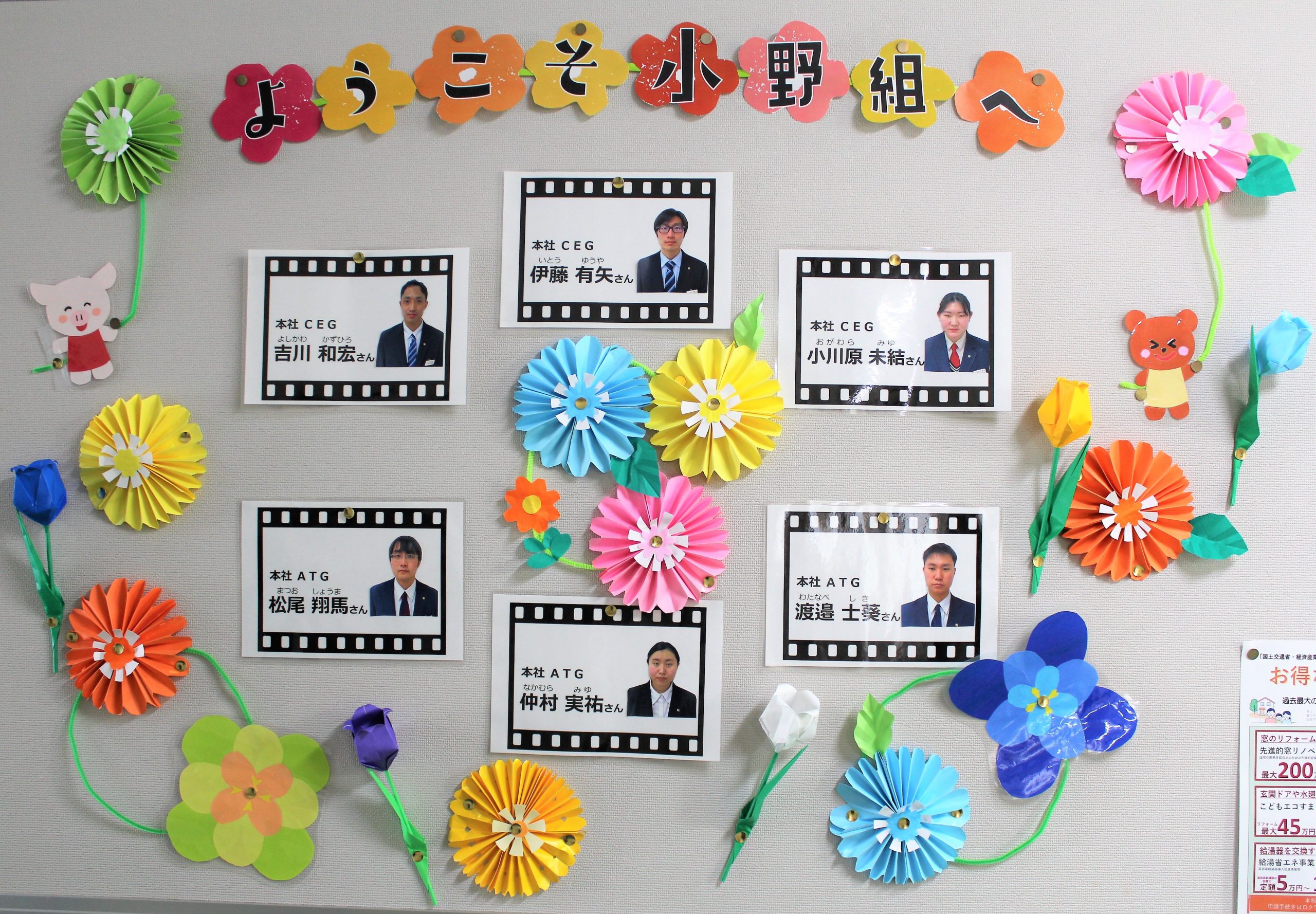 新入社員のお二人にウェルカムボードを作ってもらいました!お店の入り口が華やかになりました!good job。