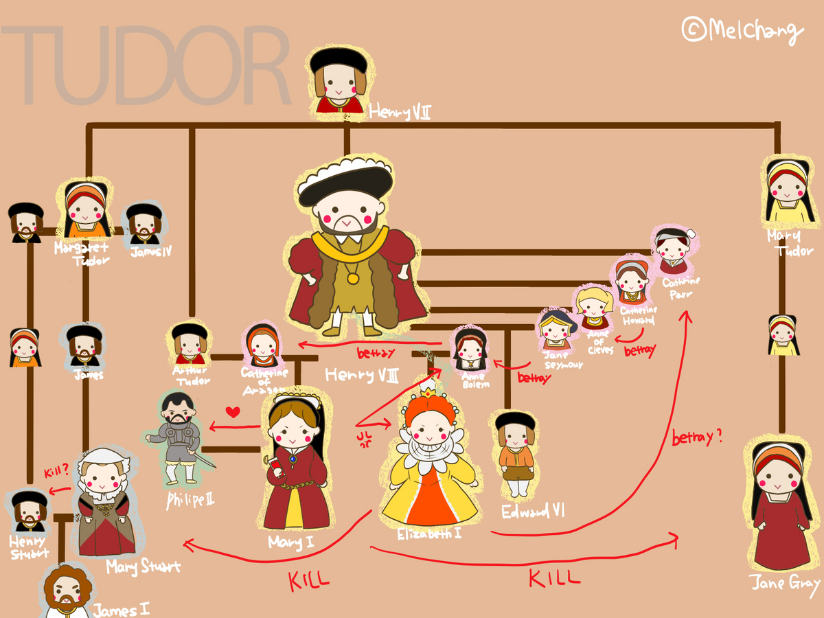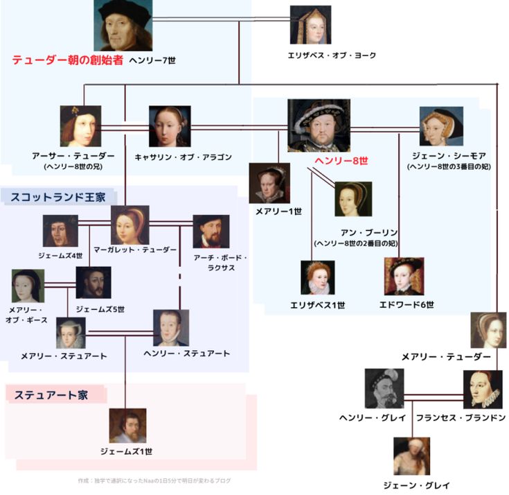 山口おじゅき🇬🇧 on X: "3週間の休暇中にちょこちょこ描いてました! ヘンリー8世のクレイジー感が伝わる家系図になることを目標にかきかき。人物のイラストも全部自分で全部書きました~満足! 明日は大学入学共通テスト!出るかどうかわかんないけど、チューダー朝。