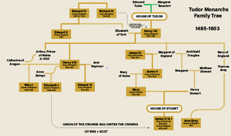 テューダー朝君主家系図 ヘンリー7世からジェームズ6世兼1世まで、リチャード3世、エドワード4世、エドワード5世も含む:r UsefulCharts。