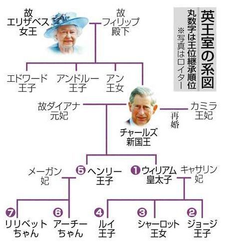 チャールズ新国王、3歳で王位継承1位に 王室スリム化・節約に意欲:中日新聞Web。