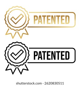 特許取得済みのスタンプバッジ。特許取得済みの製品ラベル。チェックマークと星印の付いた特許スタンプ。Premiumベクトル素材。
