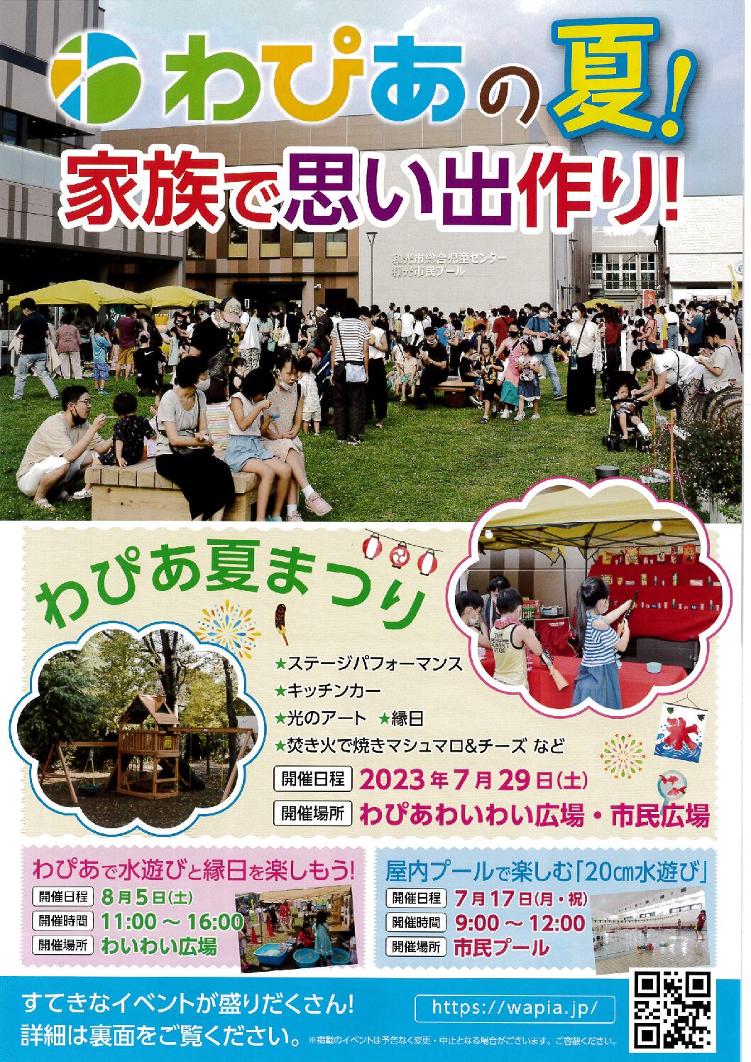 2023年イベントチラシ夏号 7月~9月和光市広沢複合施設「わぴあ」。