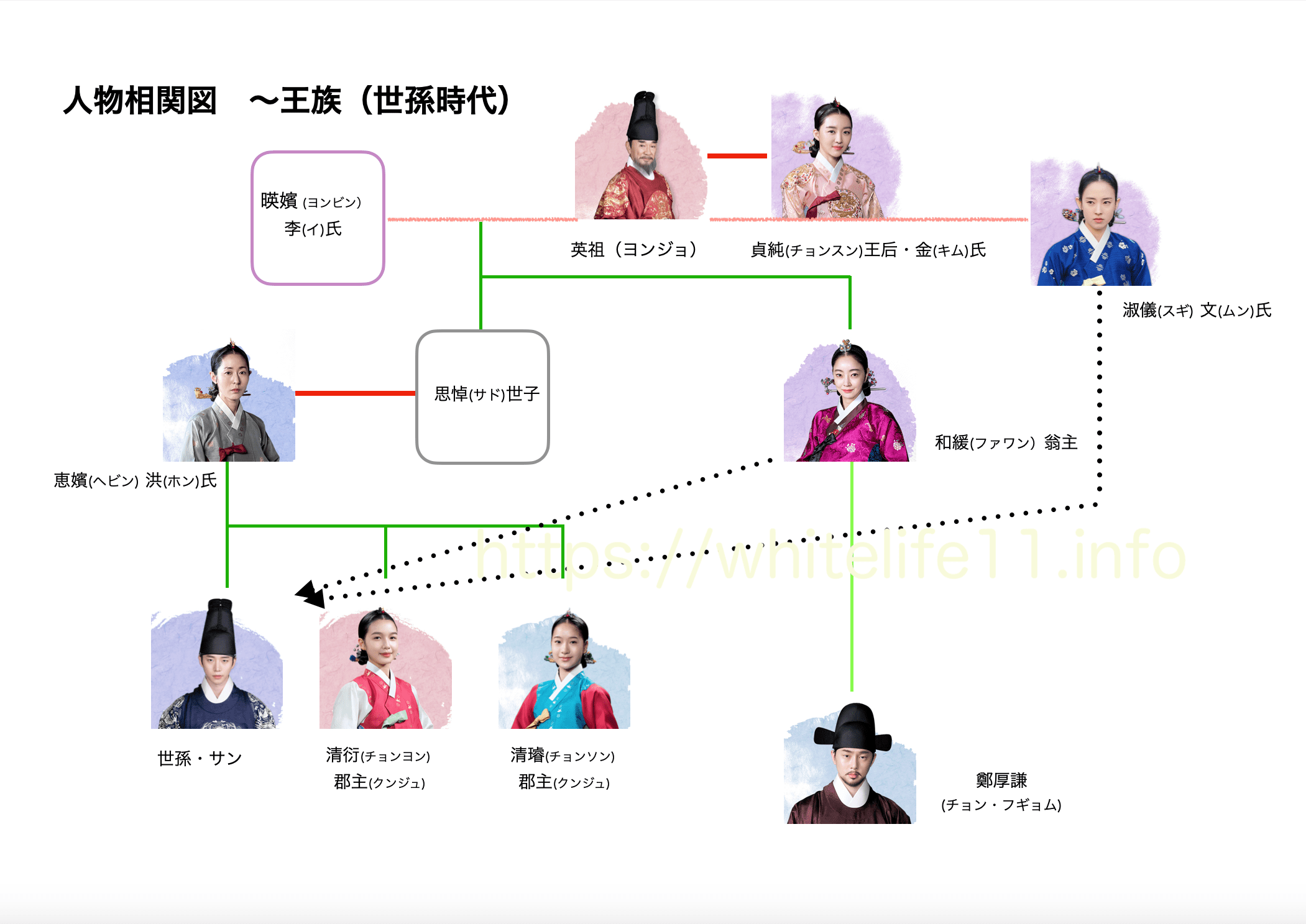 赤い袖先の相関図とキャストをオリジナルの図で詳しく解説!協調・敵対する王族や尚宮、女官たちの複雑な関係もこれで全てがわかります!まりこの韓国ドラマチャンネル。