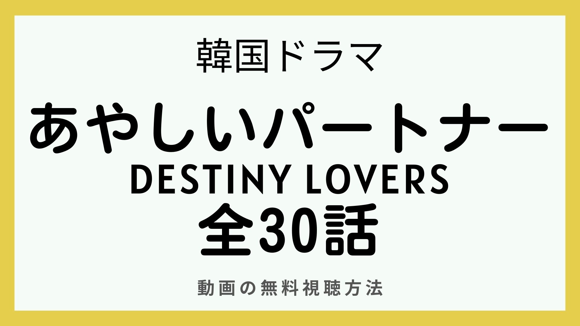 あやしいパートナー~Destiny Lovers~』 無料動画 あらすじ キャスト チ・チャンウク主演 2017年。