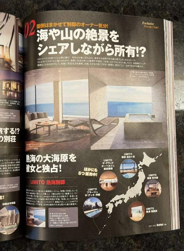 大人の男性向けファッション&ライフスタイル誌 Safari 2024年5月号にUMITOが掲載されました。UMITO。