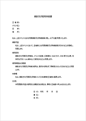 無料ダウンロード 写真撮影及び使用承諾書テンプレート・Word形式全4種類。