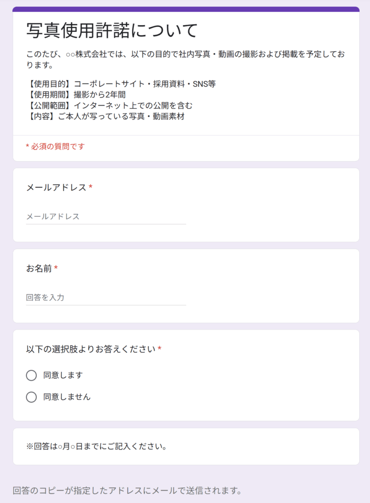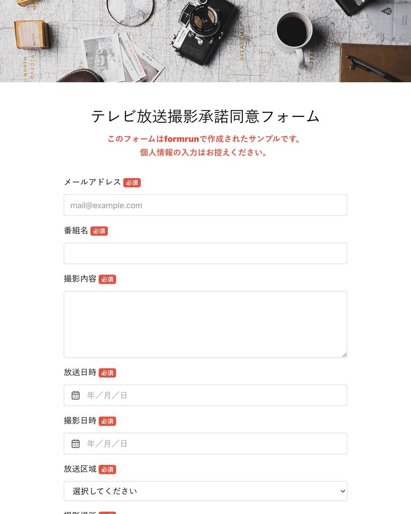 同意フォームテンプレート・サンプルで簡単作成formrun。