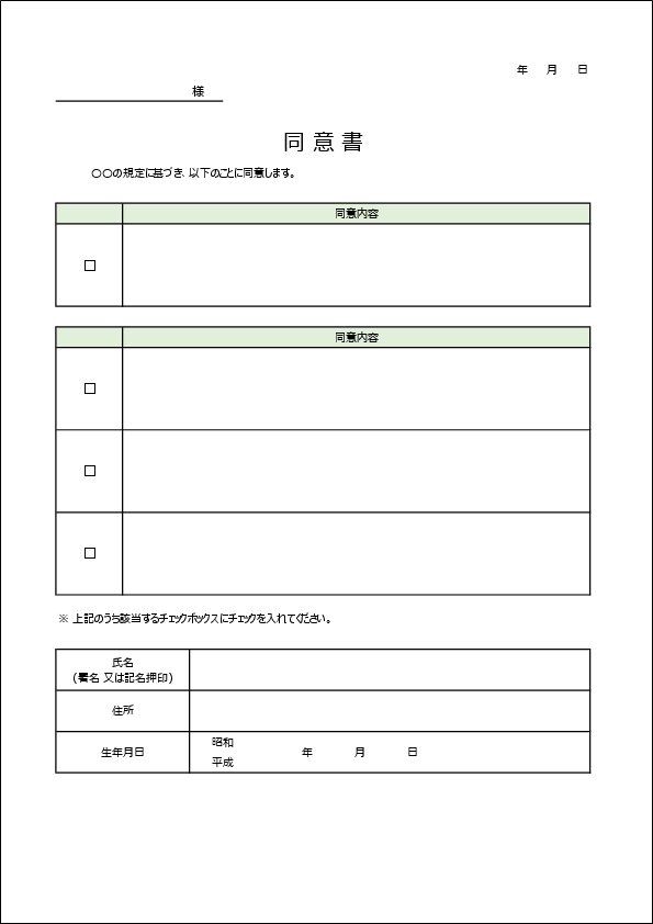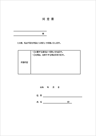 同意書Wordで作成した雛形 テンプレート の無料ダウンロード。