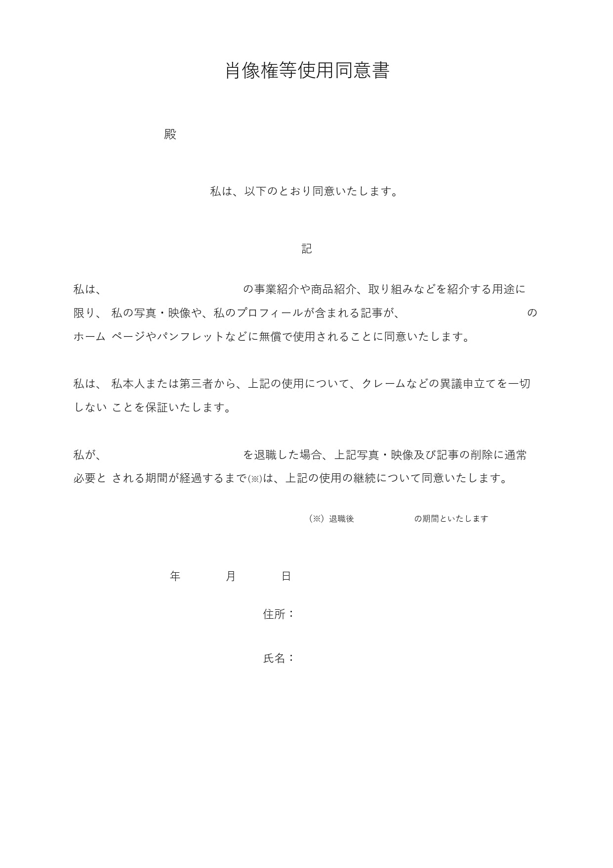 無料配布 肖像権同意書 テンプレート・フォーマット配布中!4s Production 中沢coconalaブログ。