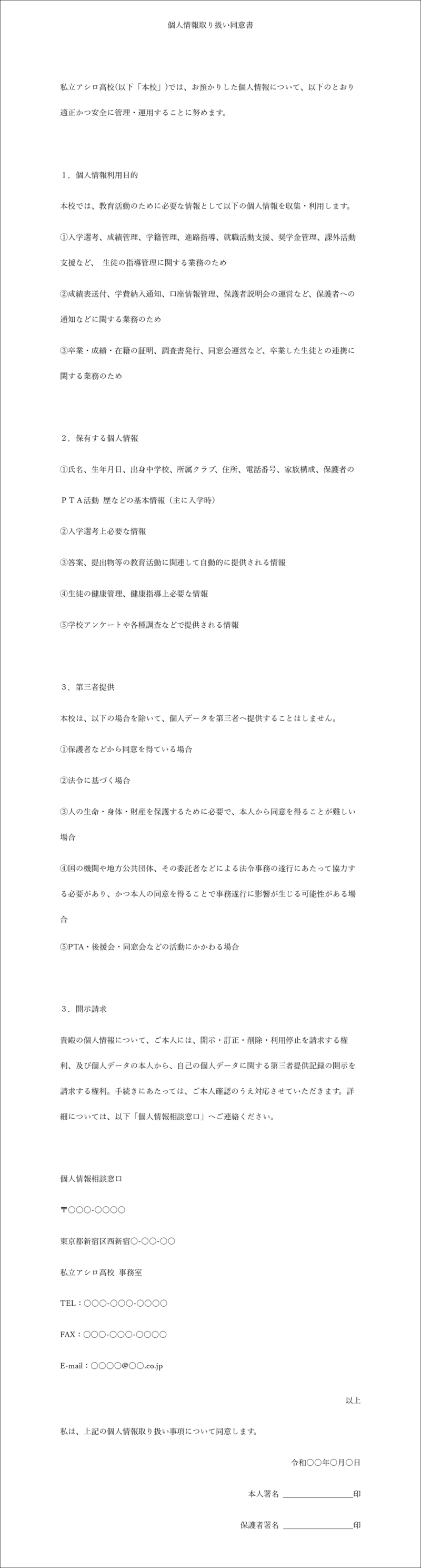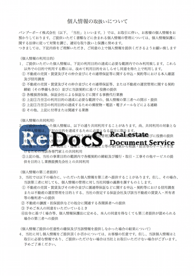個人情報の取り扱い同意書書式・ひな形・テンプレート賃貸管理ソフトReDocS。