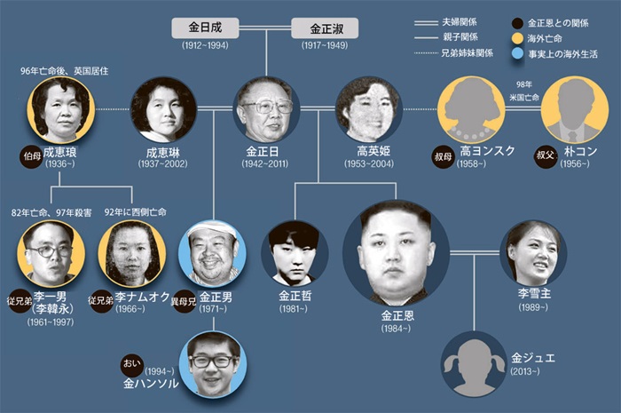 金正男 キムジョンナム の家系図をチェック!金正恩とは異母兄弟。