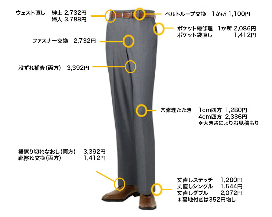 裾上げ お直し サービス&料金 洋服のお直し・リフォームのマジックミシン。