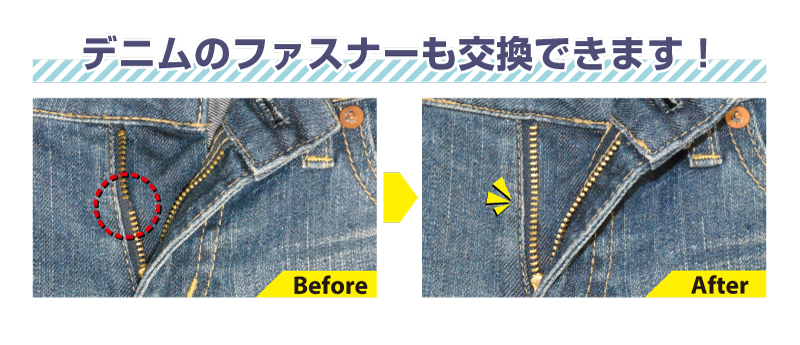 デニムのファスナー交換洋服のリフォームならフォルムアイ。