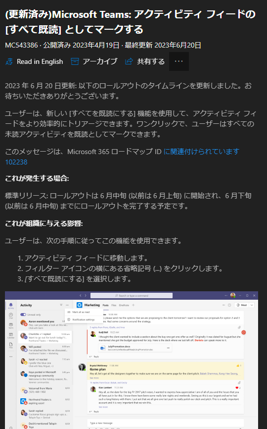 Microsoft Teams :アクティビティで「すべて既読にする」機能が登場 – Art-Break .log : Taichi Nakamura。