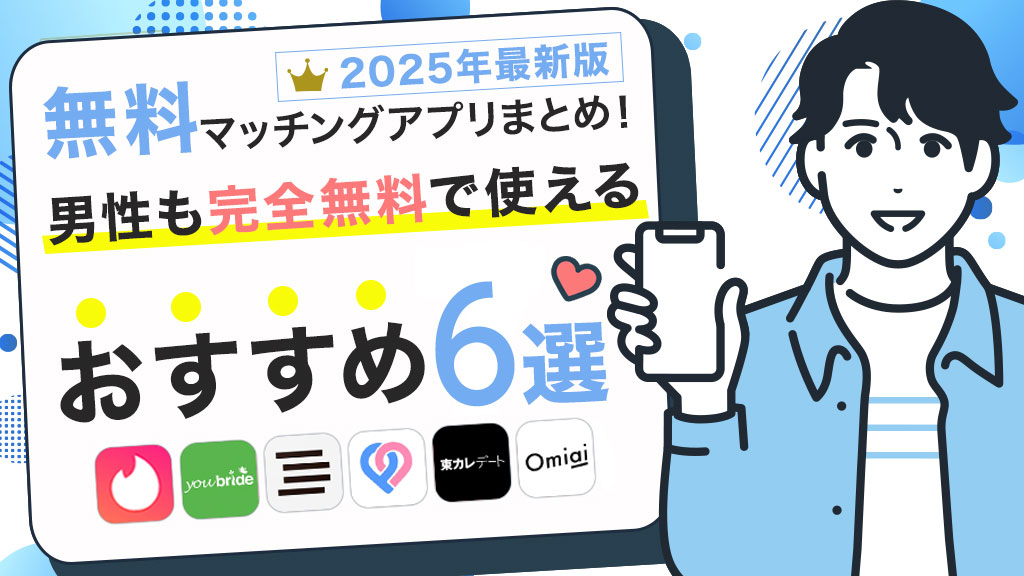 無料マッチングアプリまとめ!男性も完全無料で使えるおすすめ6選 2025年最新みんなのマッチングアプリ。