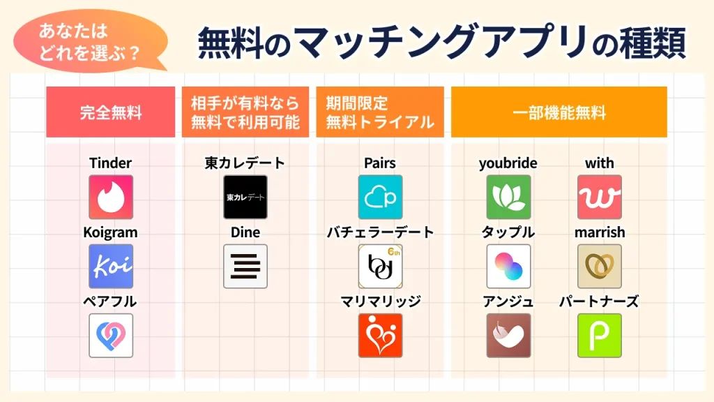 男女別!無料マッチングアプリ10選有料アプリとの違いや注意点も -結婚相談所比較ネット結婚相談所比較ネット。