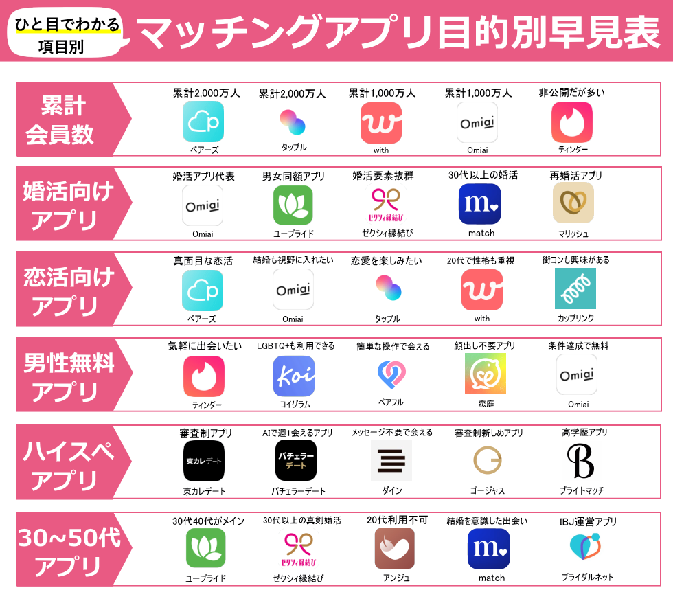 マッチングアプリおすすめランキング 2025年最新 出会える人気の無料アプリも目的別に徹底比較。
