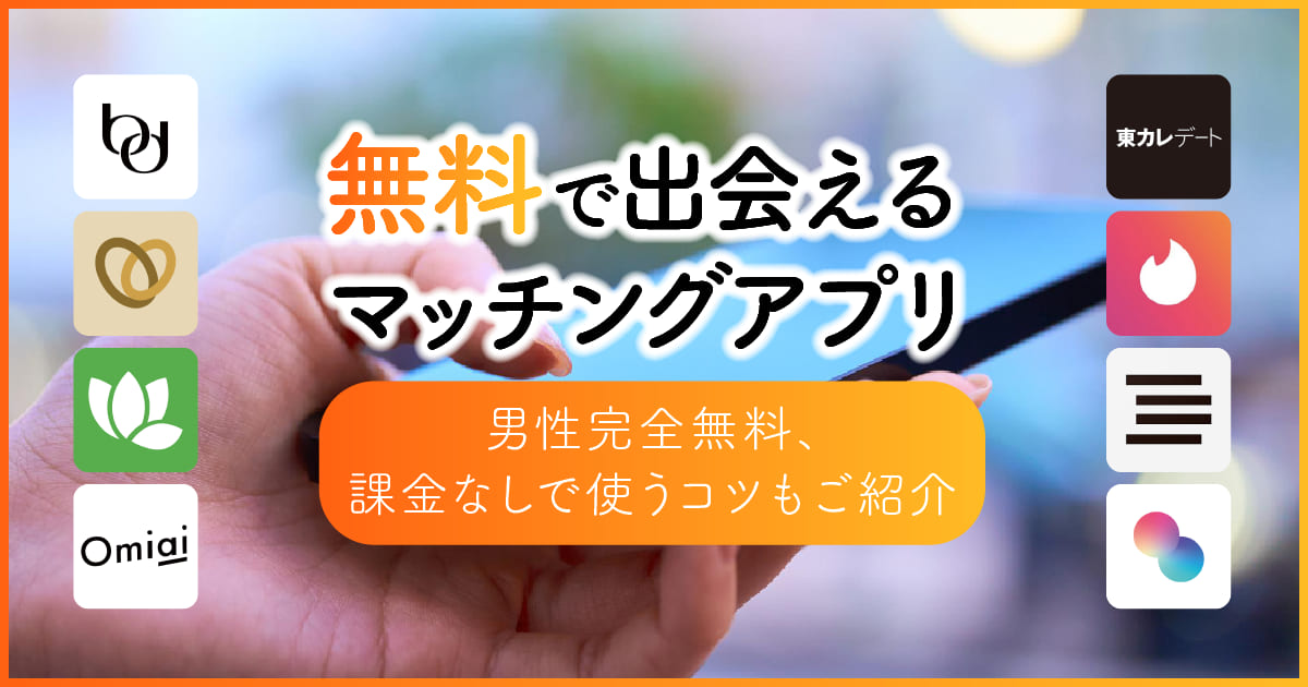 無料で出会えるマッチングアプリ7選を紹介男性完全無料、課金なしで使うコツも解説。